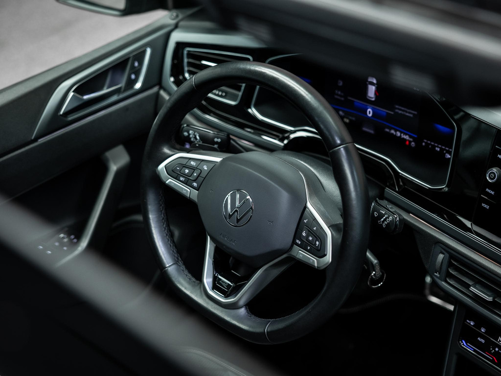 De R-Line uitvoering geeft de auto een sportieve look, zowel van binnen als van buiten. Denk aan het R-Line exterieur en interieur, een panoramadak en moderne features zoals Apple CarPlay en cruise control. De Smoke Grey Metallic lak in combinatie met het zwarte interieur zorgt voor een strakke uitstraling.